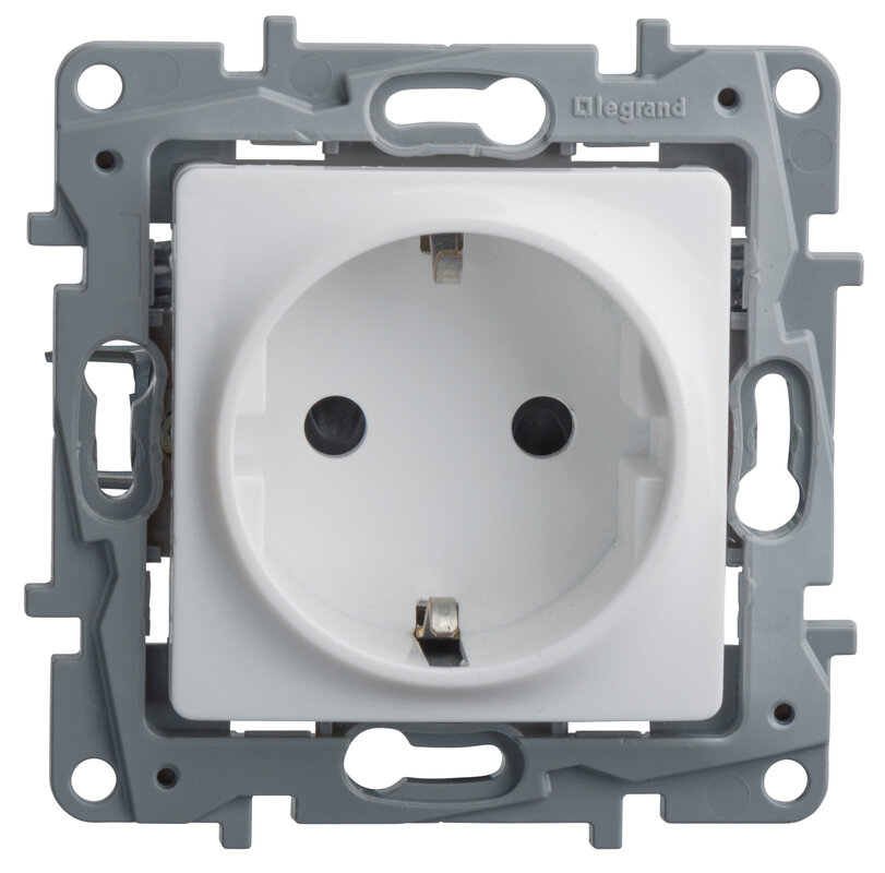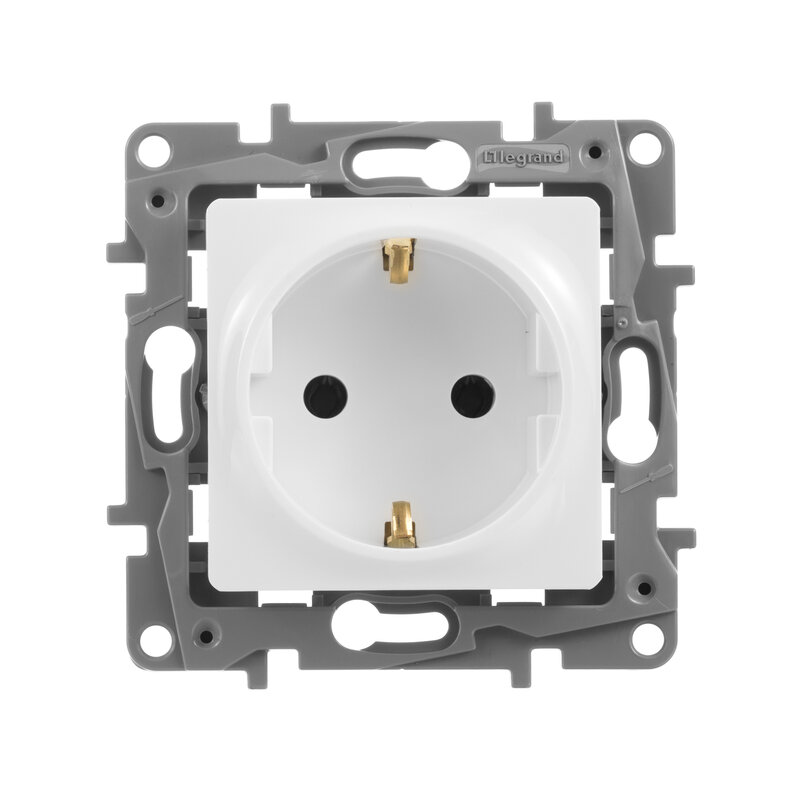 / Каталог / Электроустановочные изделия / Розетки и выключатели / Розетка 1-местная с заземлением без защитных шторок 16А белый ETIKA