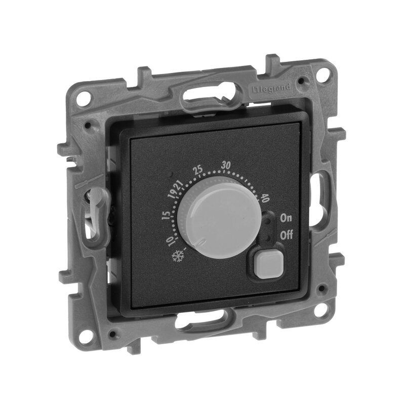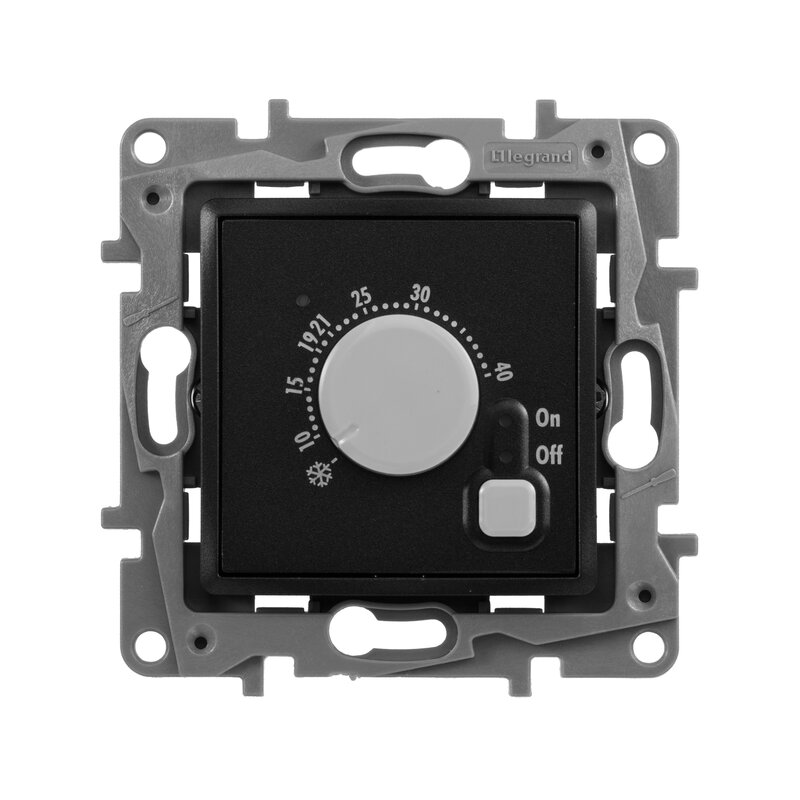 / Каталог / Электроустановочные изделия / Розетки и выключатели / Термостат с выносным датчиком температуры для пола Антрацит Legrand Etika