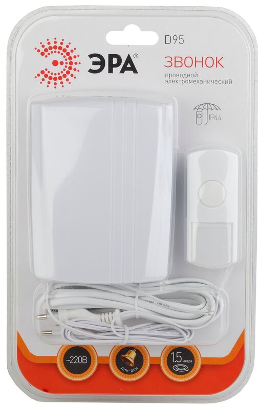 Звонок дверной ЭРА D95 проводной белый 1 мелодия