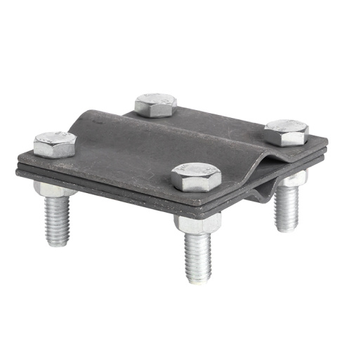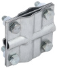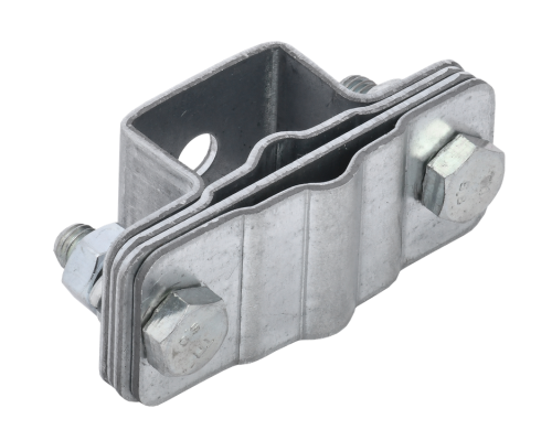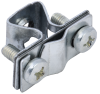 Зажим соединительный сквозной двойной пруток-пруток предназначен для соединения круглых проводников. Способен зажимать проводники как соосно, так и параллельно друг другу. Состоит из трёх пластин и зажимных болтов с гайками. Двухрядная конструкция соединителя позволяет зажимать до 4-х проводников в соединении. Материал корпуса - сталь с гальваническим цинковым покрытием.