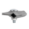 Соединитель вертикального заземлителя применяется для подключения стержневого заземлителя диаметром 16 или 20 мм к полосе 25-50 мм или к прутку 8-10 мм. Проводник подключается к заземлителю посредством болтового соединения. Материал - горячеоцинкованная сталь.