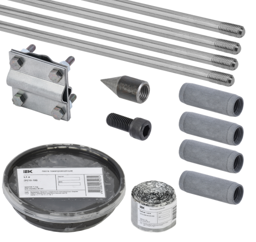 Комплект заземления товарного знака IEK используется для организации заземляющего устройства жилых объектов, объектов энергетического и промышленного комплексов, объектов связи. Данный комплект монтируется на глубину 6 метров путём последовательного соединения и заглубления стержней с помощью перфоратора или кувалды.