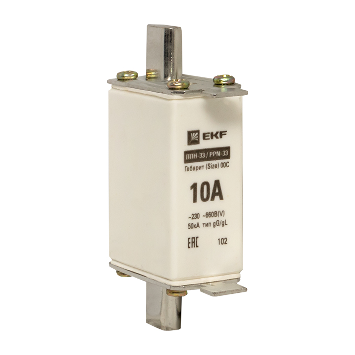 / Каталог / Низковольтное оборудование / Предохранители / Плавкая вставка ППН-33 100/ 10А габарит 00С EKF