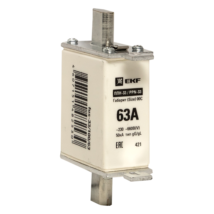 / Каталог / Низковольтное оборудование / Предохранители / Плавкая вставка ППН-33 100/ 63А габарит 00С EKF
