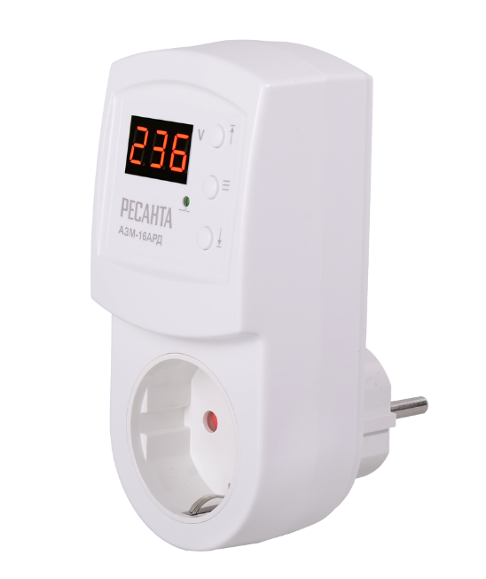 Блок защиты по напряжению Ресанта 16AРД предотвращает выход из строя электроприборов при резких перепадах напряжения в сети. Компактное устройство вставляется в розетку, подходит для однофазной сети. Используется в комплекте с бытовым оборудованием, чувствительным к изменениям напряжения, таким как компьютерная техника, телевизоры, холодильники, аудио- и видеотехника. Для контроля показателей предусмотрен LED-дисплей. Максимальная мощность нагрузки составляет 2500 Вт.