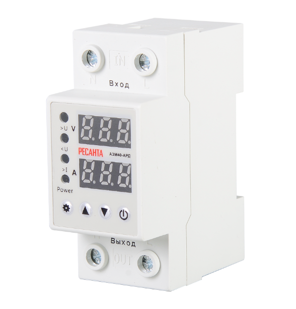 Автоматический защитный модуль от повышенного/пониженного напряжения Ресанта АЗМ-40АРД используется для аварийного отключения нагрузки при недопустимых скачках напряжения сети. Границы отключения в модели Ресанта АЗМ-40АРД настраиваются пользователем. Верхняя граница отключения: 230-300 В, нижняя граница отключения: 140-210 В. Время воздействия: при понижении напряжения 0.8 с, при повышении напряжения 0.2-0.5 с.