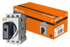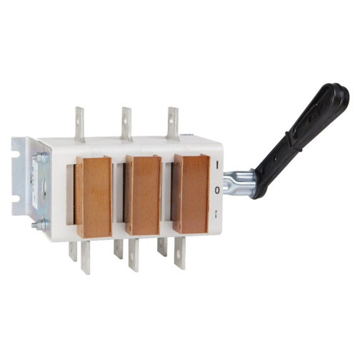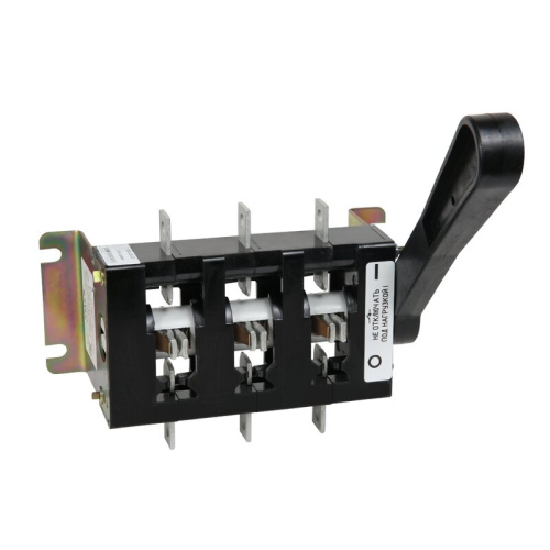 Разъединитель-предохранитель 3 полюсный на номинальный ток 250 А, номинальный условный ток короткого замыкания Iq 20 (кА), где установлена передняя смещенная рукоятка, а максимальное сечение присоединяемых медных шин составляет 120 кв. мм.