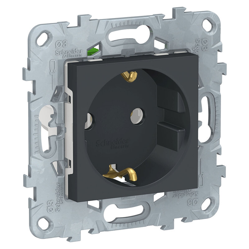 / Каталог / Электроустановочные изделия / Розетки и выключатели / Schneider Unica / Розетка с зазем.,б/шт,безвин заж антрацит