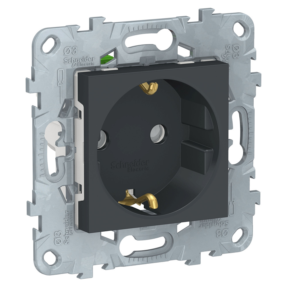 / Каталог / Электроустановочные изделия / Розетки и выключатели / Schneider Unica / Розетка UN с зазем,с/шт,безвинт,Антрацит Schneider