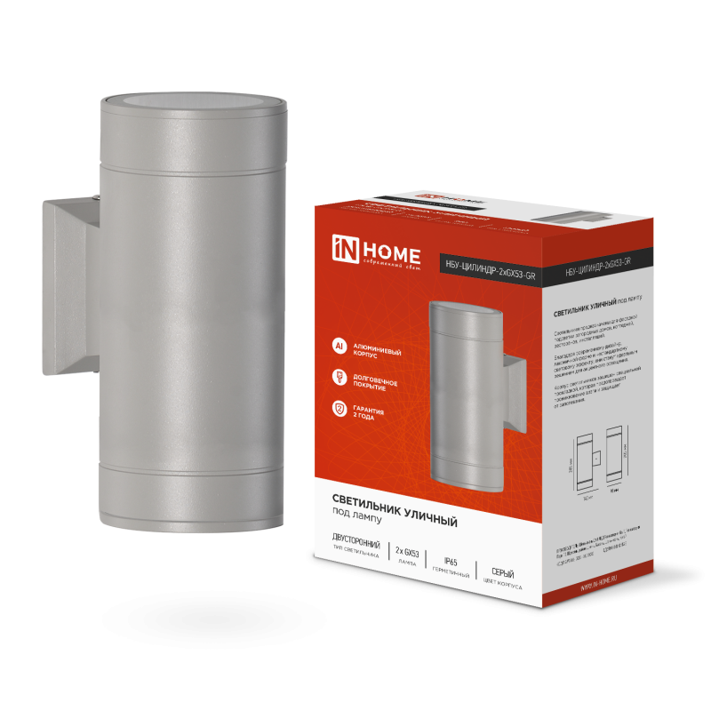 Оригинальные уличные светильники GX53-ЦИЛИНДР ТМ IN HOME предназначены для работы со светодиодными лампами GX53. Линейка представлена в трех цветах (белый, черный, серый) и двух вариантах исполнения (односторонний и двусторонний). Светильники предназначены для фасадной подсветки загородных домов, коттеджей, ресторанов, инсталляций. Благодаря современному дизайну, лаконичной форме и нестандартному световому эффекту, они станут идеальным решением для акцентного освещения общественных зданий и частных загородных коттеджей. Светильник имеет разборный корпус для установки светодиодной лампы. Корпус защищен специальной прокладкой, которая предотвращает проникновение влаги и защищает от запотевания.