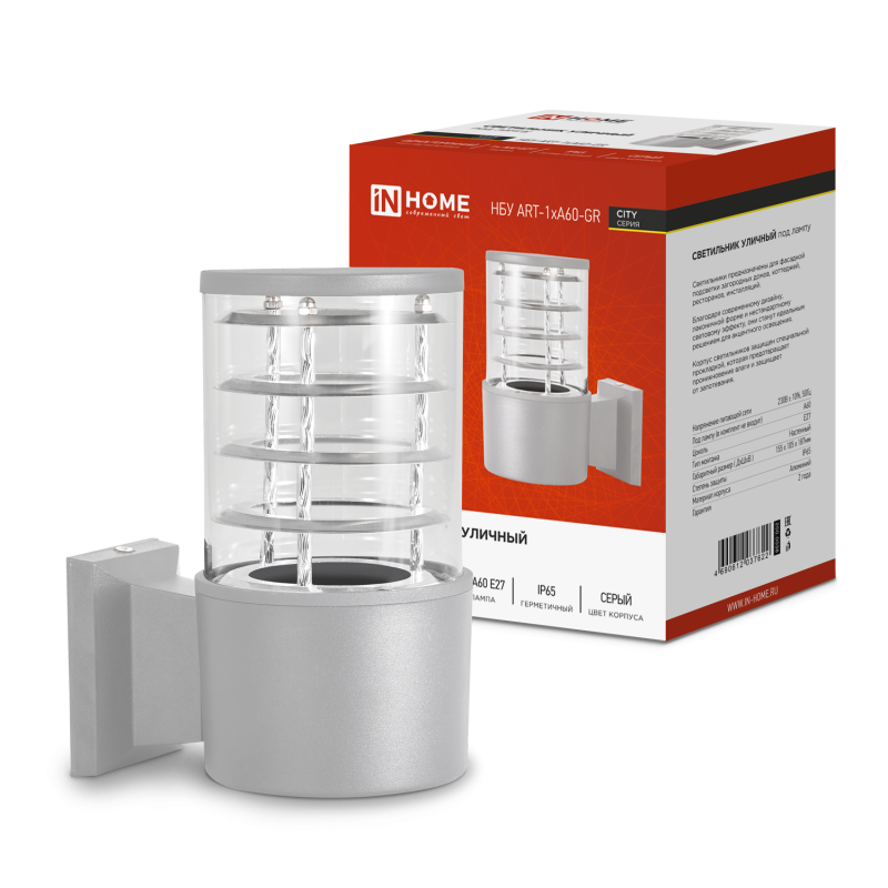 / Каталог / Светотехника / Светильники для уличного освещения / Светильники накладные, настенные / Светильник уличный односторонний НБУ ART-1хA60-GR алюминиевый под лампу 1хA60 E27 серый IP65 IN HOME
