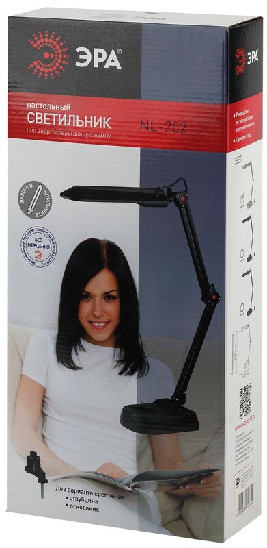 / Каталог / Светотехника / Интерьерное освещение / Светильники настольные / Настольный светильник ЭРА NL-202-G23-11W-W с лампой PL на струбцине и с основанием белый