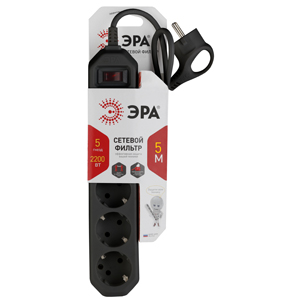 Сетевой фильтр ЭРА USF-5es-5m-B с базовой защитой с заземлением с выключателем 5 розеток 5м 10А чер