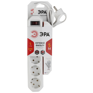 Сетевой фильтр ЭРА USF-5es-5m-W обладает несомненными достоинствами, позволяющими ему стать необходимым атрибутом современного дома. Прочный корпус универсального цвета имеет 5 розеток, каждая из которых имеет заземление. Длина его провода составляет 5 метров, что особенно удобно. Функционируя как удлинитель, сетевой фильтр ЭРА исключит большое количество лишних проводов. При использовании фильтра можно быть спокойным за технику, ведь он защищает от короткого замыкания, фильтрует импульсные помехи. При этом мощность фильтра составляет 2200 Вт, что обеспечивает безопасную и бесперебойную работу техники. Современная квартира уже не представляется без большого количества приборов, и именно сетевой фильтр защитит их в любой ситуации. Сетевые фильтры ЭРА разрабатываются собственным техническим бюро, проходят проверку на всех этапах производства, что обеспечивает высокое качество продукта.