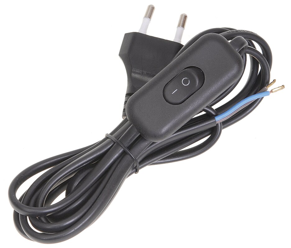 Шнур УШ-1КВ опрессованный с вилкой со встроенным выключателем 2х0,75/2м черный IEK