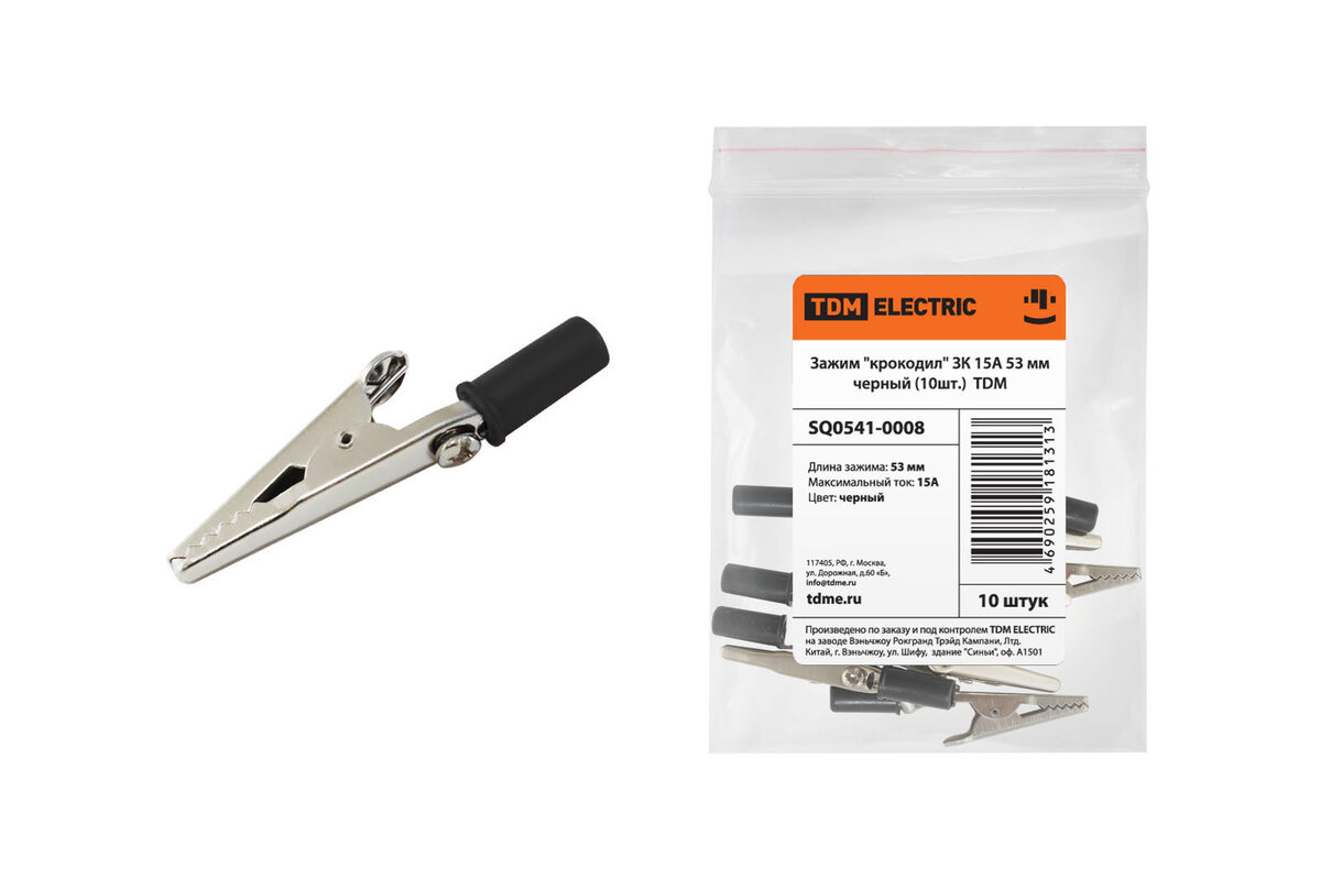 Зажим "крокодил" ЗК 15А 53мм черный (10шт) TDM