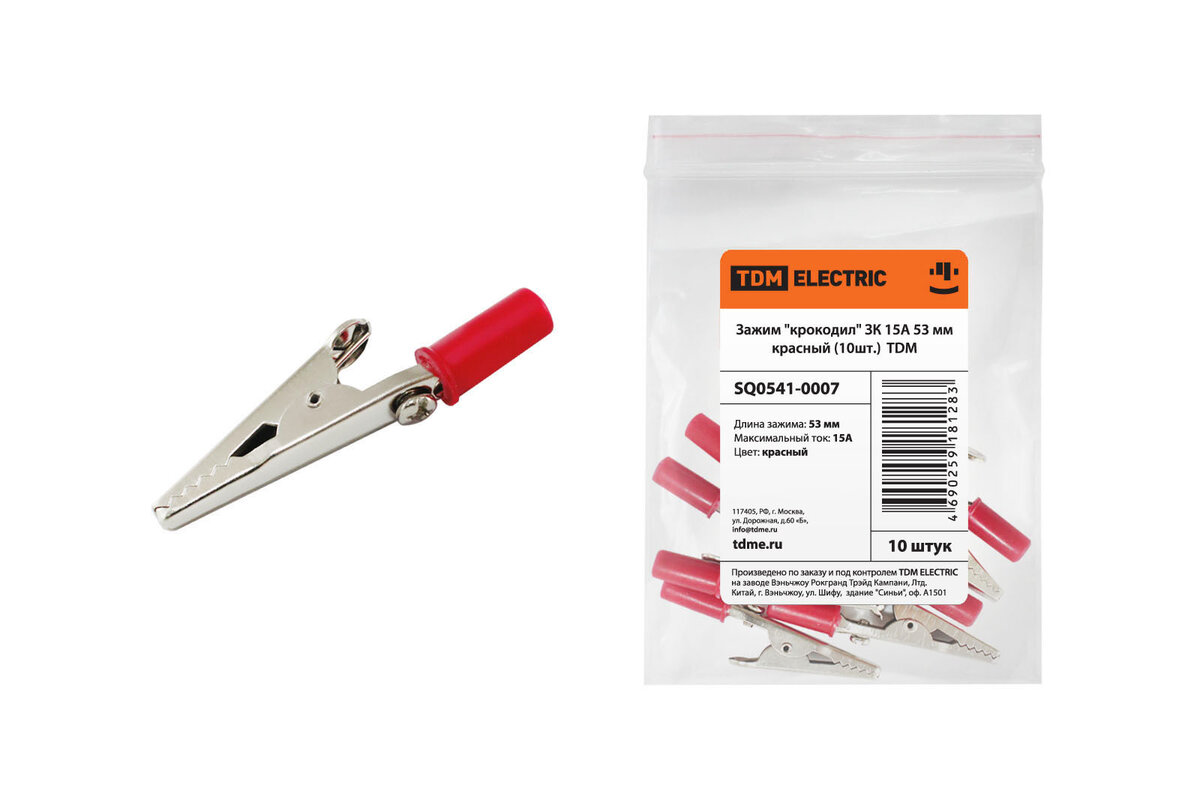Зажим "крокодил" ЗК 15А 53мм красный (10шт) TDM