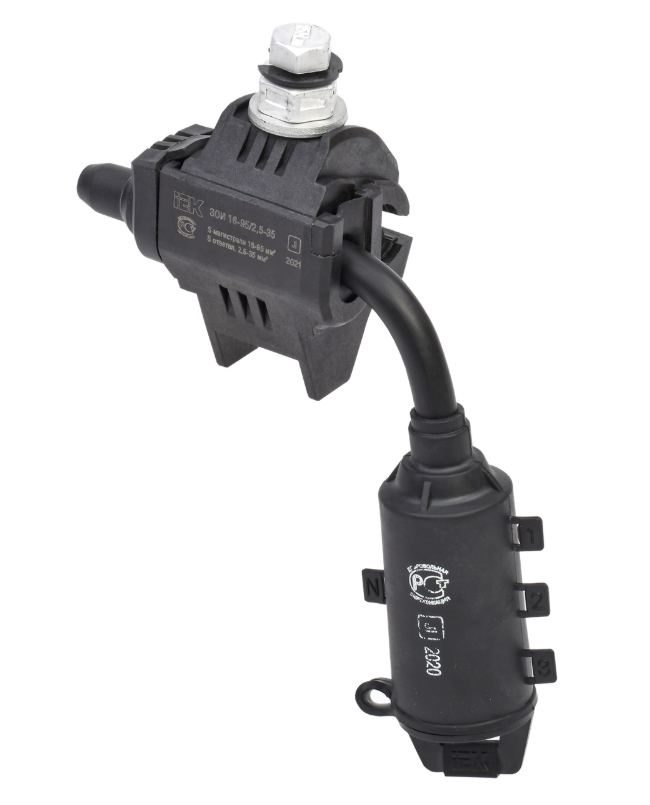 Комплект для наложения заземления КНЗ-95 IEK предназначен для подключения переносного защитного заземления при выполнении работ на воздушной линии электропередач напряжением до 1 кВ. Комплект состоит из прокалывающего зажима и адаптера для закороток и заземления.
