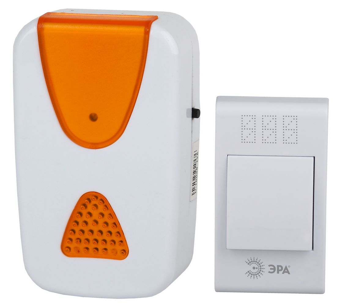 Звонок дверной ЭРА A02 беспроводной аналоговый белый с оранжевым 32 мелодии