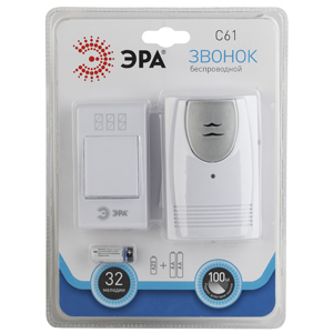 Звонок дверной ЭРА C61 беспроводной белый 32 мелодии