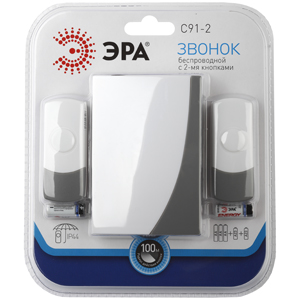 Звонок дверной ЭРА C91-2 беспроводной две кнопки белый с серым 2 мелодии