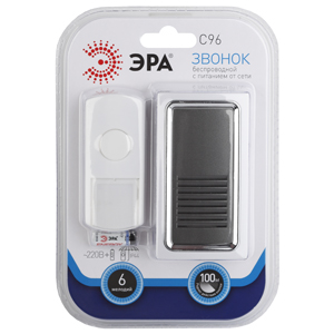 Звонок дверной ЭРА C96 беспроводной от сети белый с черным 6 мелодий