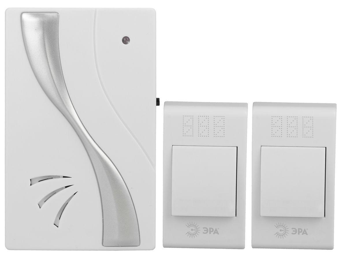 / Каталог / Электроустановочные изделия / Звонки / Звонки беспроводные / Звонок дверной ЭРА TWIN-B беспроводной две кнопки белый 32 мелодии