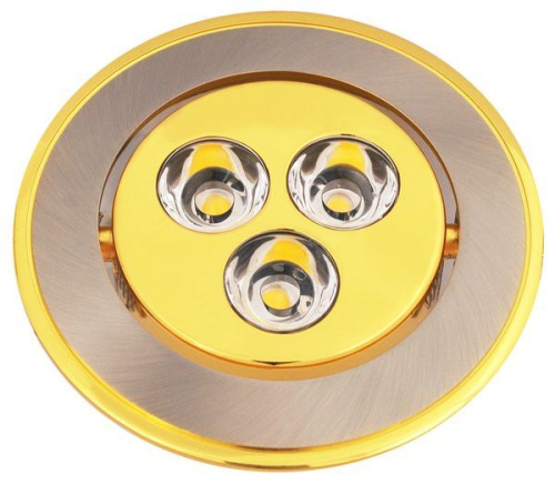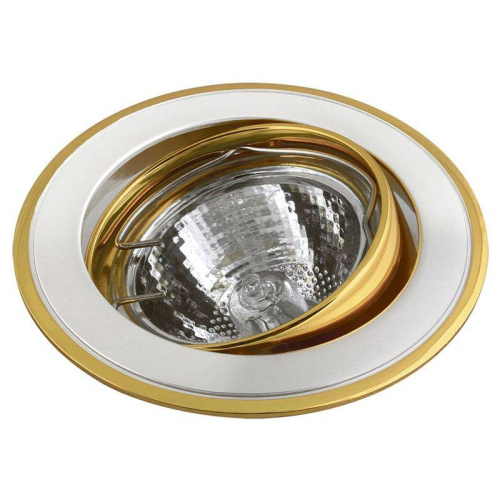Corona 51 2 22, Светильник точечный литой неповоротный комбинированный, максимальная мощность 50W, ГЛН/LED/КЛЛ GU5.3, диаметр 95мм, высота 23мм, вырезное отверстие 75мм, IP20, 12V/220-240V, никель/золото/никель. КОМТЕХ